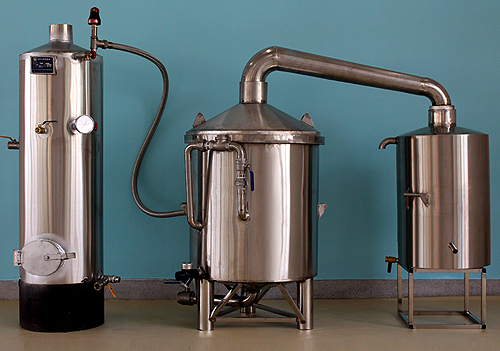 商品結構:分體式蒸餾設備。包括鍋爐、酒料桶和冷卻器